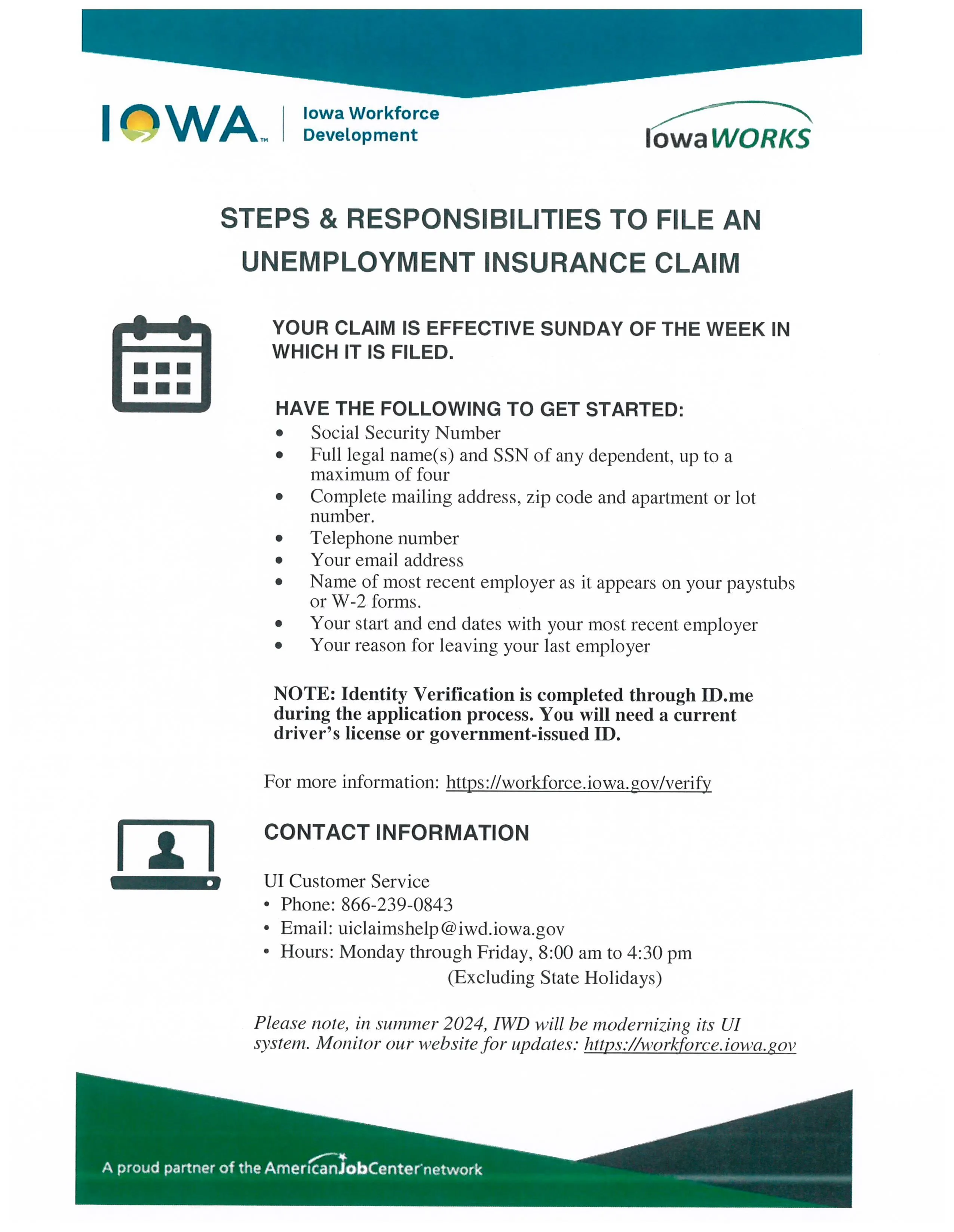 (A quick guide we put together to aid in filing for unemployment. You will want to also review the information on the Iowa Unemployment website prior to filing).